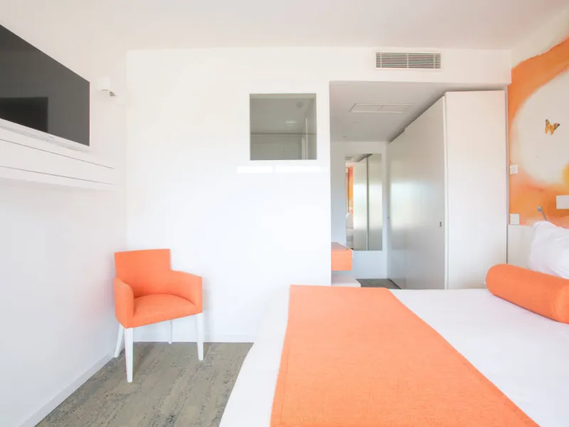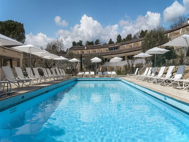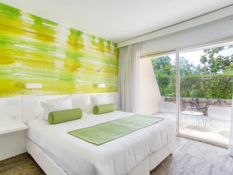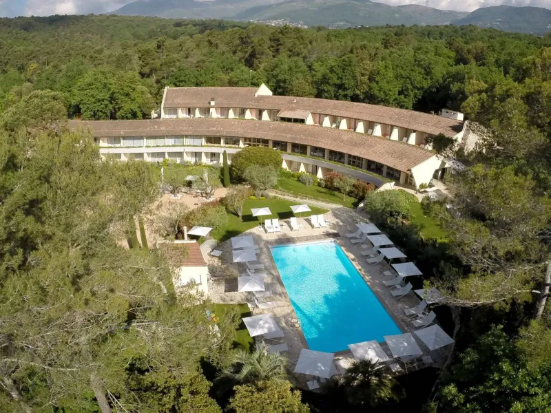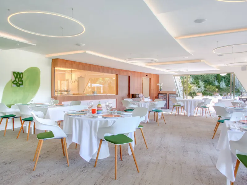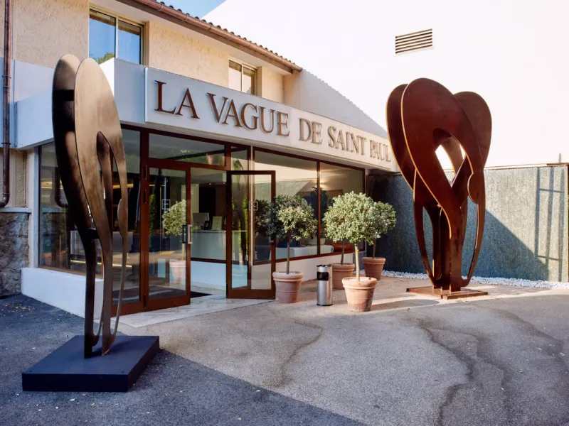 La Vague de Saint-Paul offers 50 rooms and suites, a restaurant, seminar rooms, a spa, a beautiful outdoor swimming pool, a petanque court, a tennis court, all within a stone's throw (2.5km) of the famous medieval village of Saint-Paul de Vence.Here, the 70's setting hides a modern design decoration. The luxurious and contemporary furniture harmonizes very well with the immaculate white of the walls, the mix of colors of the decoration and the greenery of the park. In one breath, you are transported to another time.