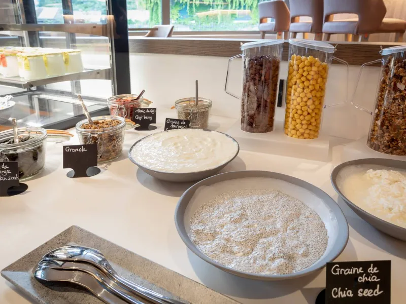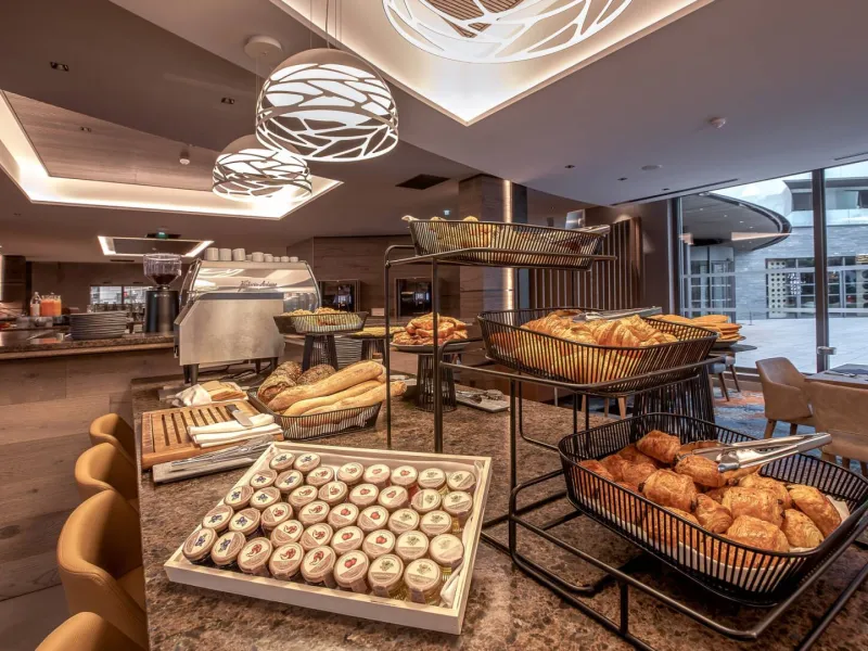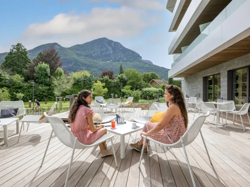 Every morning you can enjoy a buffet breakfast on site. The hotel has a restaurant "Le Ricochet" open for lunch and dinner, with a terrace overlooking Lake Annecy.