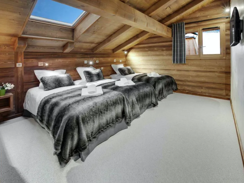 Beautiful adjoining 165 m² chalet built on 3 levels (set of 2 partially adjoining cottages linked by a common lobby). Kitchen open to dining room and living room (fireplace, TV, home cinema), terrace and balcony with private spa access and panoramic view, 3 bedroom 2 persons (beds 90 x 200 which can be twin to create 1 double bed) and 1 Room 3 people (3 beds 90 x 200), mezzanine/games room (composed of 2 beds 90, TV bench), 4 bathrooms (bath or shower)3 WC, laundry, heated cloakroom (shoe-dryer). TV in the rooms. Garden furniture. Private parking. Sheets, towels, cleaning included. Ski: Grand-Bornand/Chinaillon 800 m, bottom 200 m. Lake Annecy 32km. Hikes to prox. Weekend: contact owners. Garage per biciclette: No