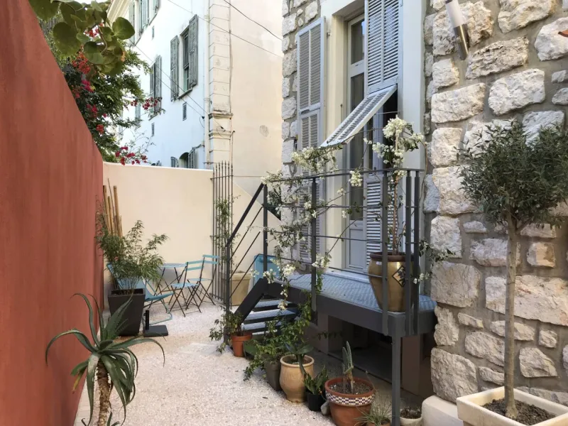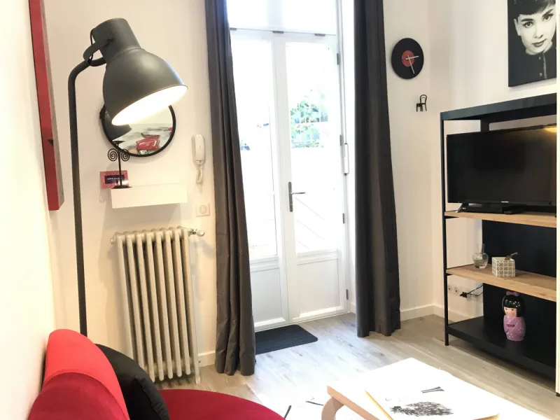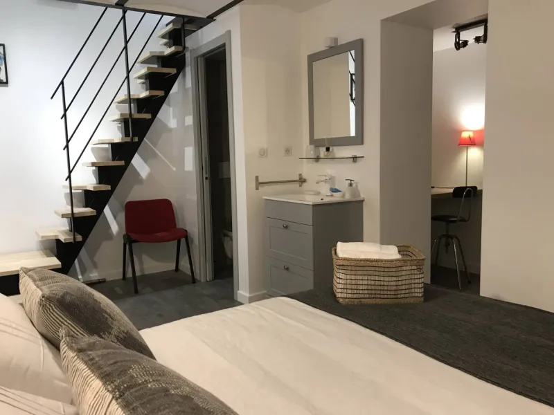 Bright and comfortable with optimized insulation, the atypical Topaze duplex is located in the Belle Époque villa "le Nid", close to shops and tramway. It features a galvanized metal balcony overlooking a patio with access to the landscaped garden. 1 bed 140x190.Minimum 5 nights throughout the year and 5 nights in July and August.