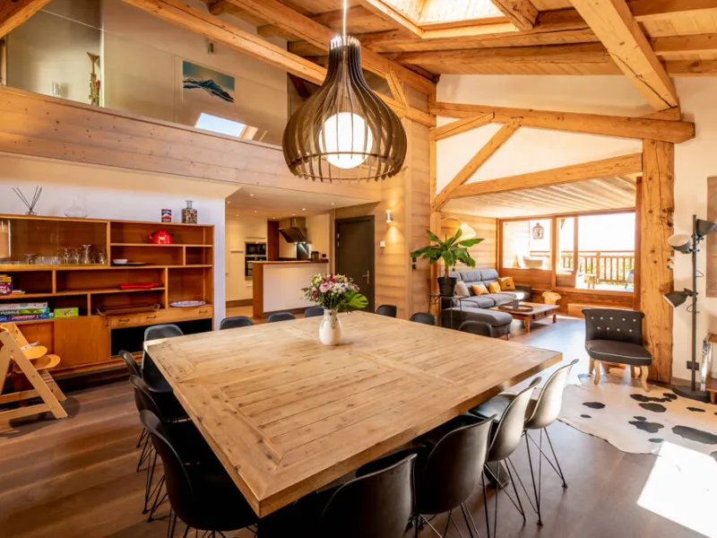14-person duplex 180m². 5 bedrooms, 2 balconies. South-facing, views over the entire valley.Fully-equipped kitchen opening onto living room: fridge, oven, microwave, hood, ceramic hob, toaster, electric kettle, blender, juicer, Nespresso and filter coffee machines, dishwasher, washing machine and dryer. Two raclette and two fondue machines.