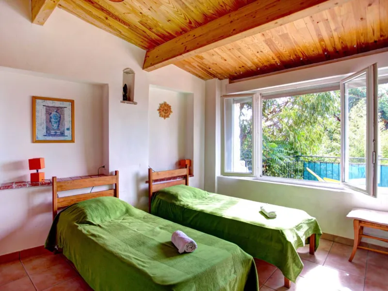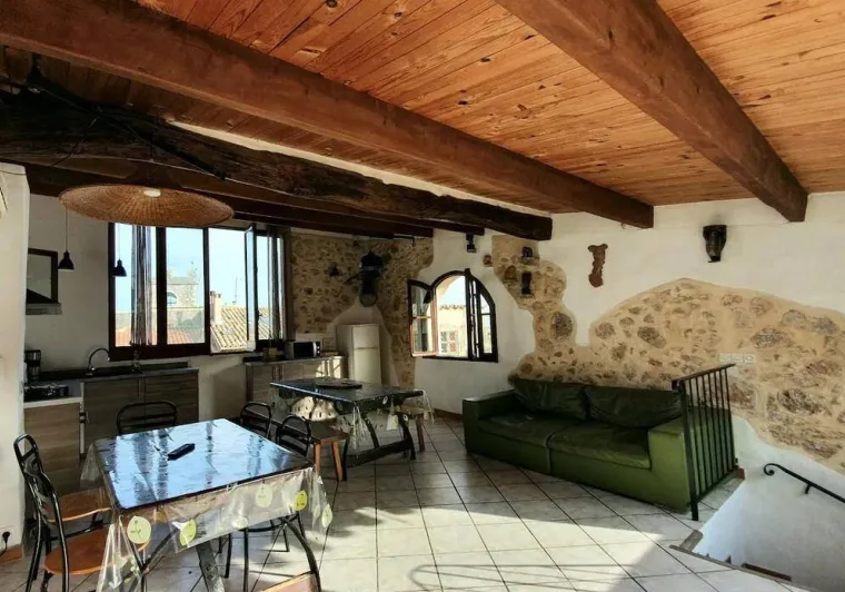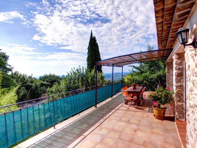 In the heart of the medieval village of Saint-Jeannet, this small single-storey house has a very large terrace with a view as far as the Cap d'Antibes. Shops and restaurants less than 5 minutes walk away.1 double bed 160x200 - 2 single beds 80x190, possibility to assemble them.
