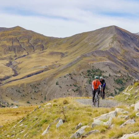 Piccoli e riservati passi "Gravel", come il Col du Parpaillon, lontani dal traffico dei loro grandi fratelli stradali, ci danno la deliziosa impressione di essere soli al mondo. Nel cuore delle cime pudiche dell'entroterra, alla svolta di una curva o di un passo, si svela infine la distesa azzurra del Mediterraneo. Calma, tranquillità, senza tempo. Come le montagne, che lasciamo con rammarico. Un viaggio maestoso, senza dubbio.