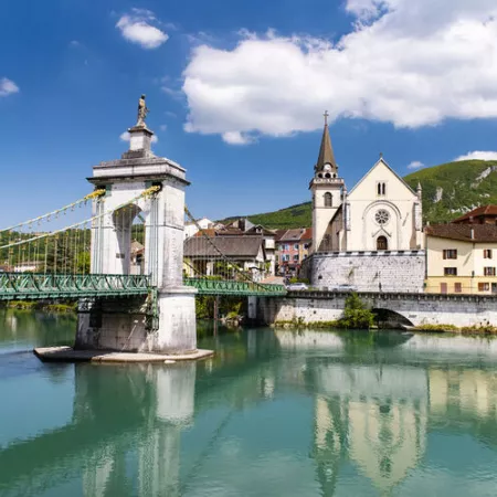 Seyssel est divisé en deux bourgs, un en Haute-Savoie et un dans l’Ain, séparés par le Rhône.