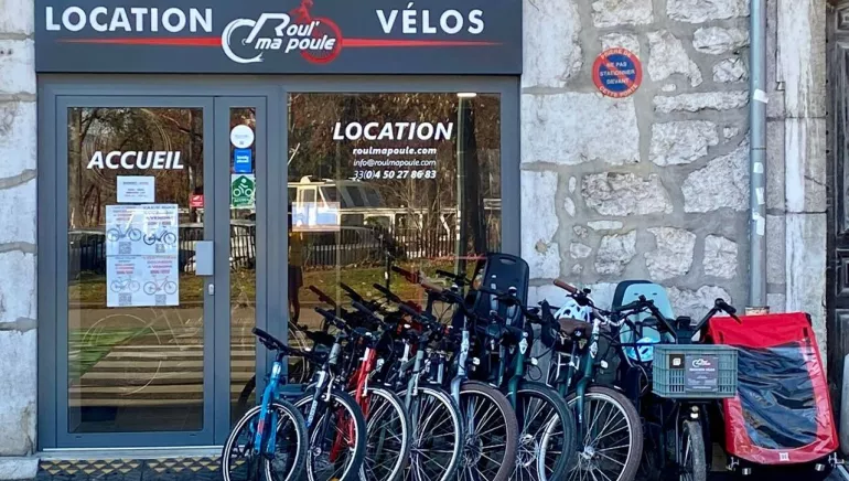 Roul' ma Poule Annecy : Bicycle rental for all. Comfort bikes, VTC, Sport bikes, Fitness bikes, VAE, E-Bikes, VAE Family E-Cargo, Children's mountain bikes, Children's trailers, Children's seats... + 260 Bikes, Open 7 days a week non-stop.